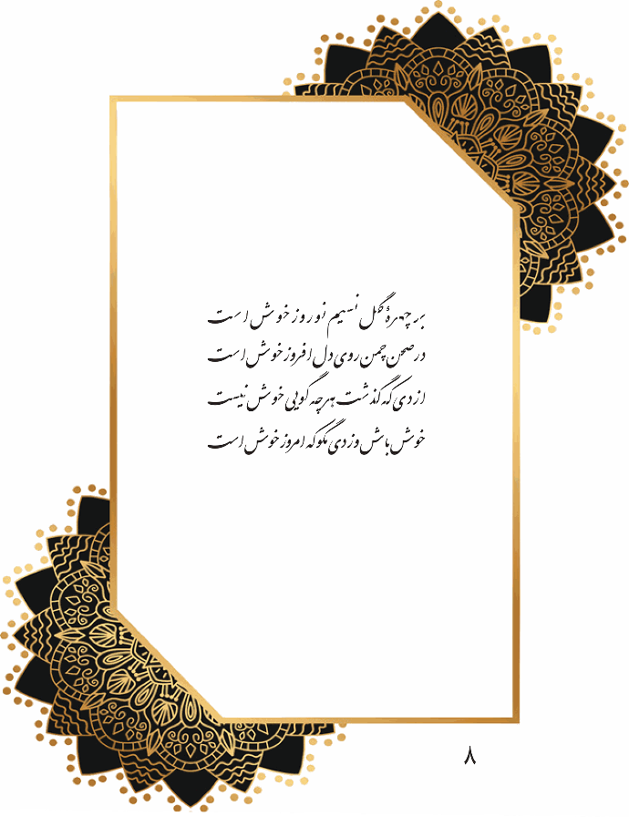 «این چرخ فلک که ما در او حیرانیمفانوس خیال از او مثالی دانیمخورشید چراغدان و عالم فانوسما چون صوریم کاندر او حیرانیم (گردانیم)»